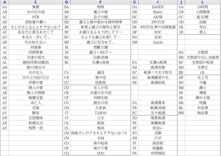 再做目錄,例:K105,片名,美片,野外,R級,....
