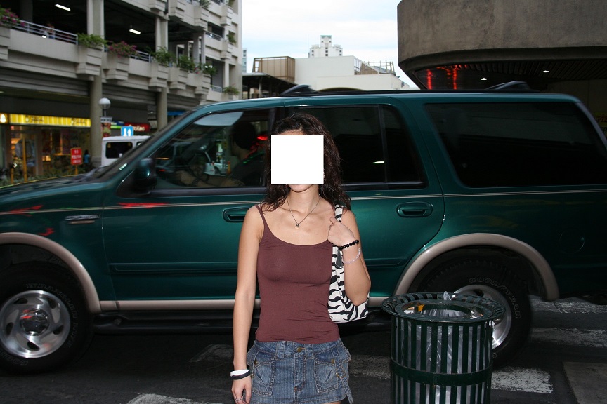 另一套沒有貼得很厲害,但那時婆也胖了一點,穿起也很有點身效果,而最重要是透明!不要以為是閃光燈才透,現場看得比照片清楚多了!特別是婆的乳頭很深色,基本上一眼就可以看見兩粒黑葡萄跟大家問好!