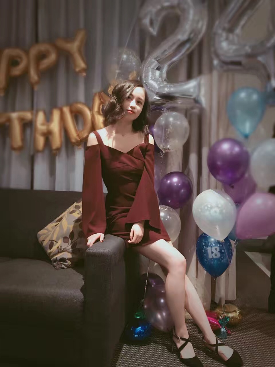 [若璟和她那天穿的酒红色吊带连衣裙]