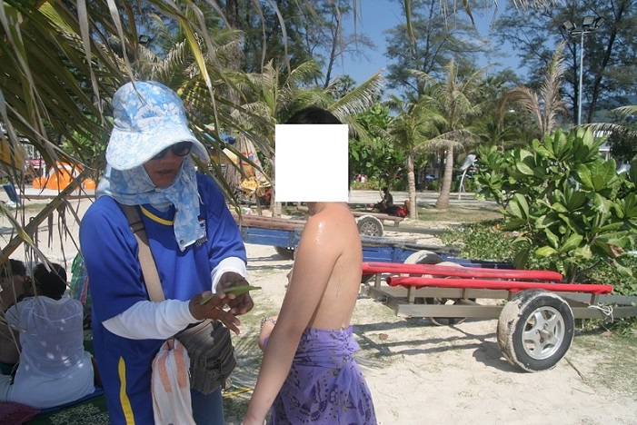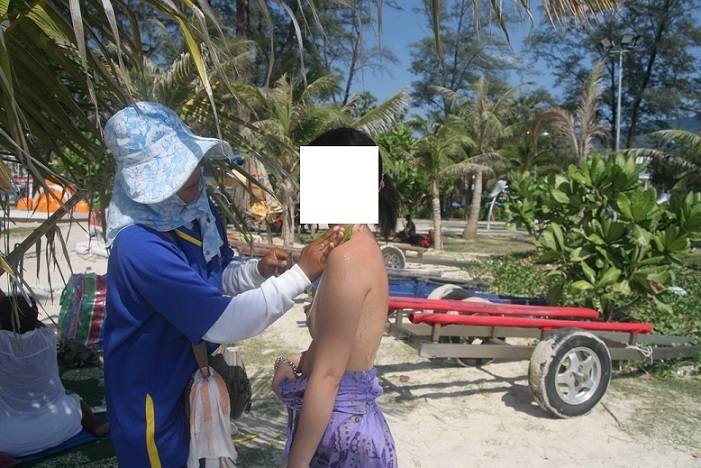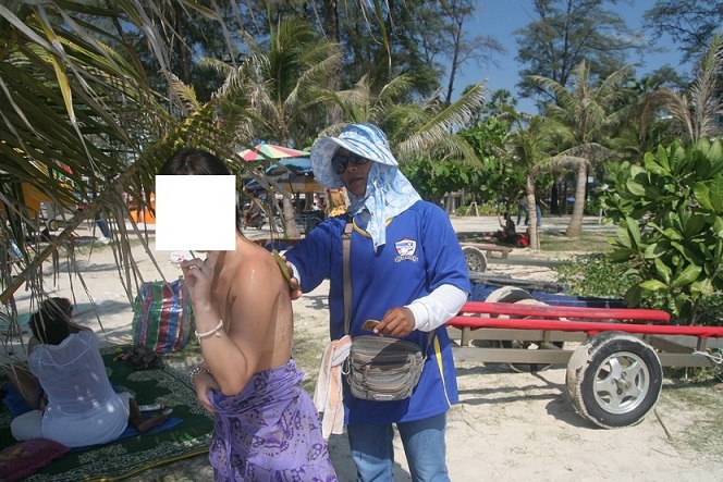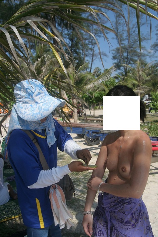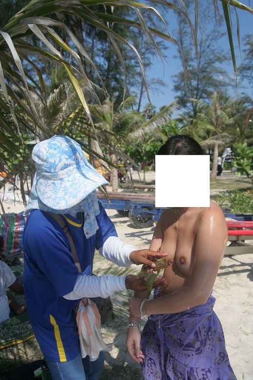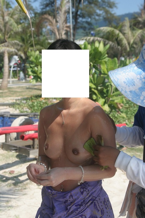 普通的護膚怎能滿足我呢,叫她到沙灘旁多人的地方,脫掉上衣在眾目睽睽之下來一次蘆薈浴,雙方(及路人們)也得到滿足!