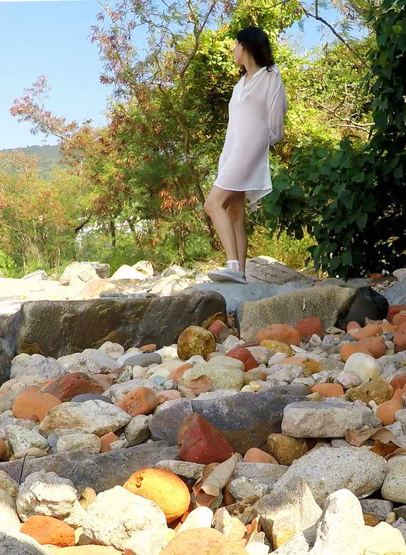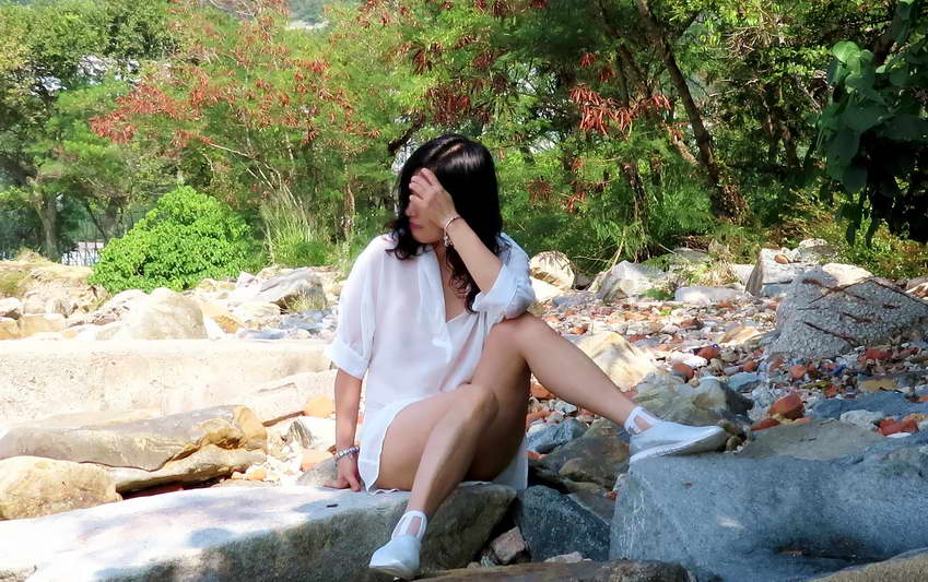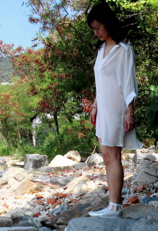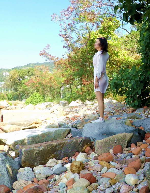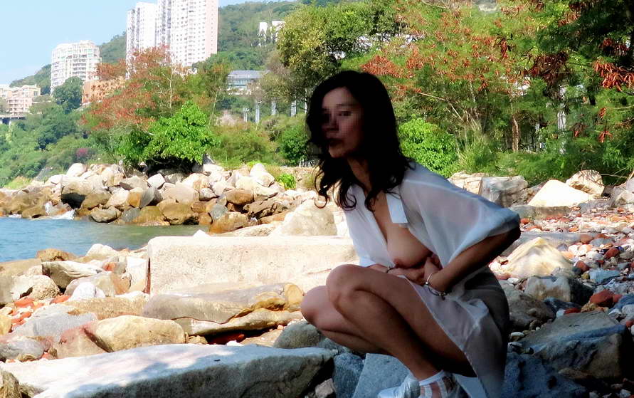 這地方常有人來看海,小菲不敢脫得太多,開始時仍穿內褲,及後膽子大了些, 把內褲脫下, 開始真正的戶外拍攝。