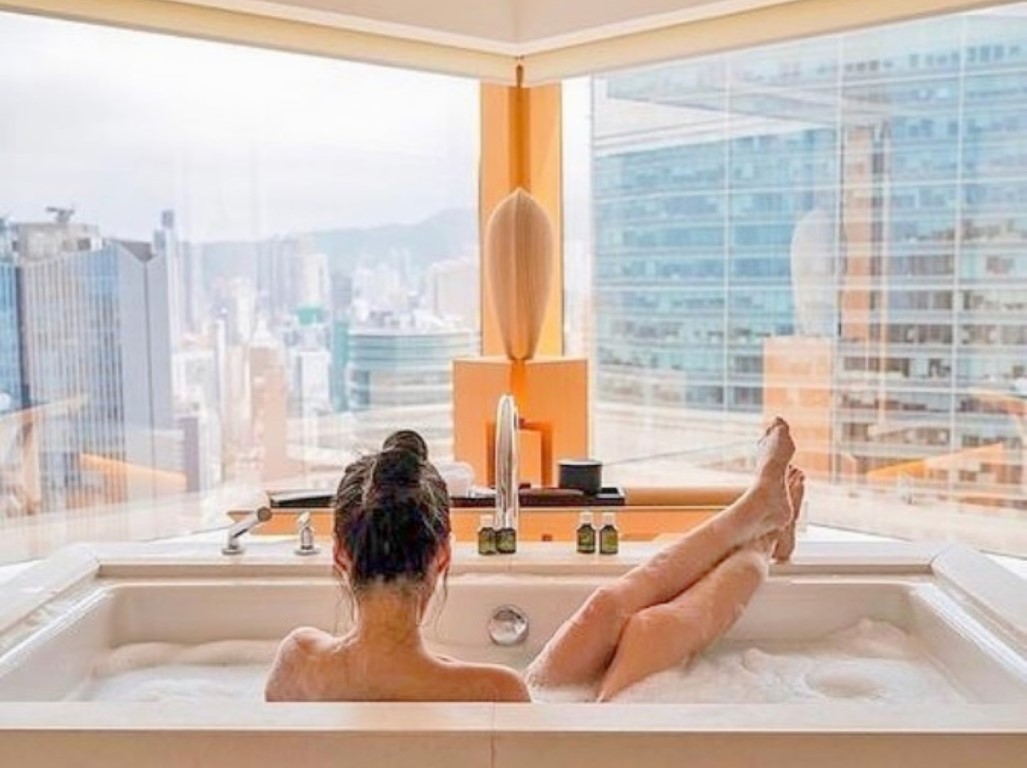 浴室的玻璃窗隔音很好,令整個浴室都十分寧靜,完全聽不到窗外的車輛噪音;而對面酒店的落地玻璃窗都十分寧靜,看似完全沒有人在裡面的!
