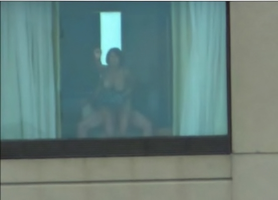 我猜到了,她一定是在做愛,只是她身後的光線不足,再加上窗外的反光,所以我還未可以看到她身後的男人!