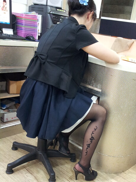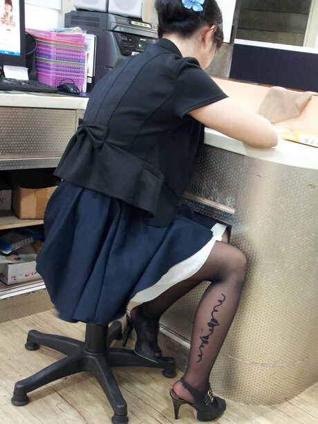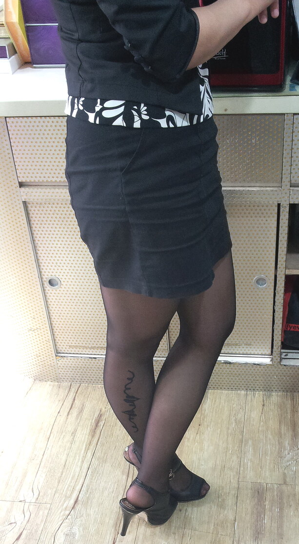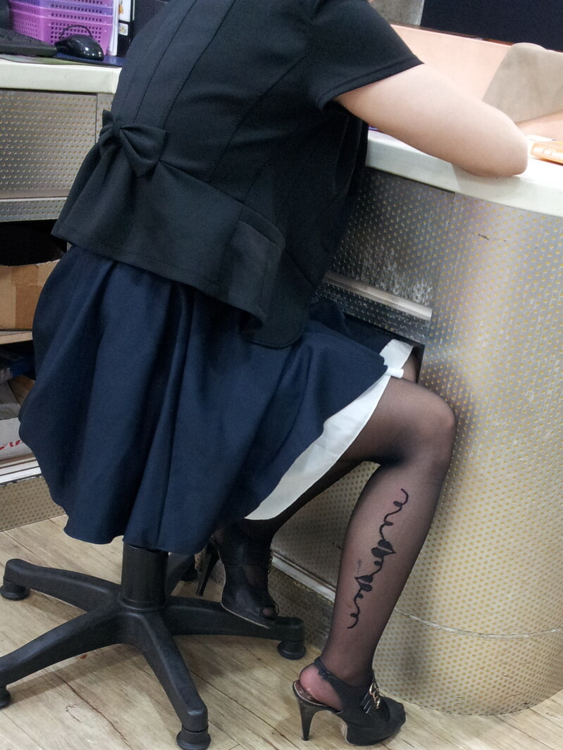 每天上班就是穿著黑絲配上細高跟引誘男人視姦.還越穿越騷.真是淫蕩騷貨~