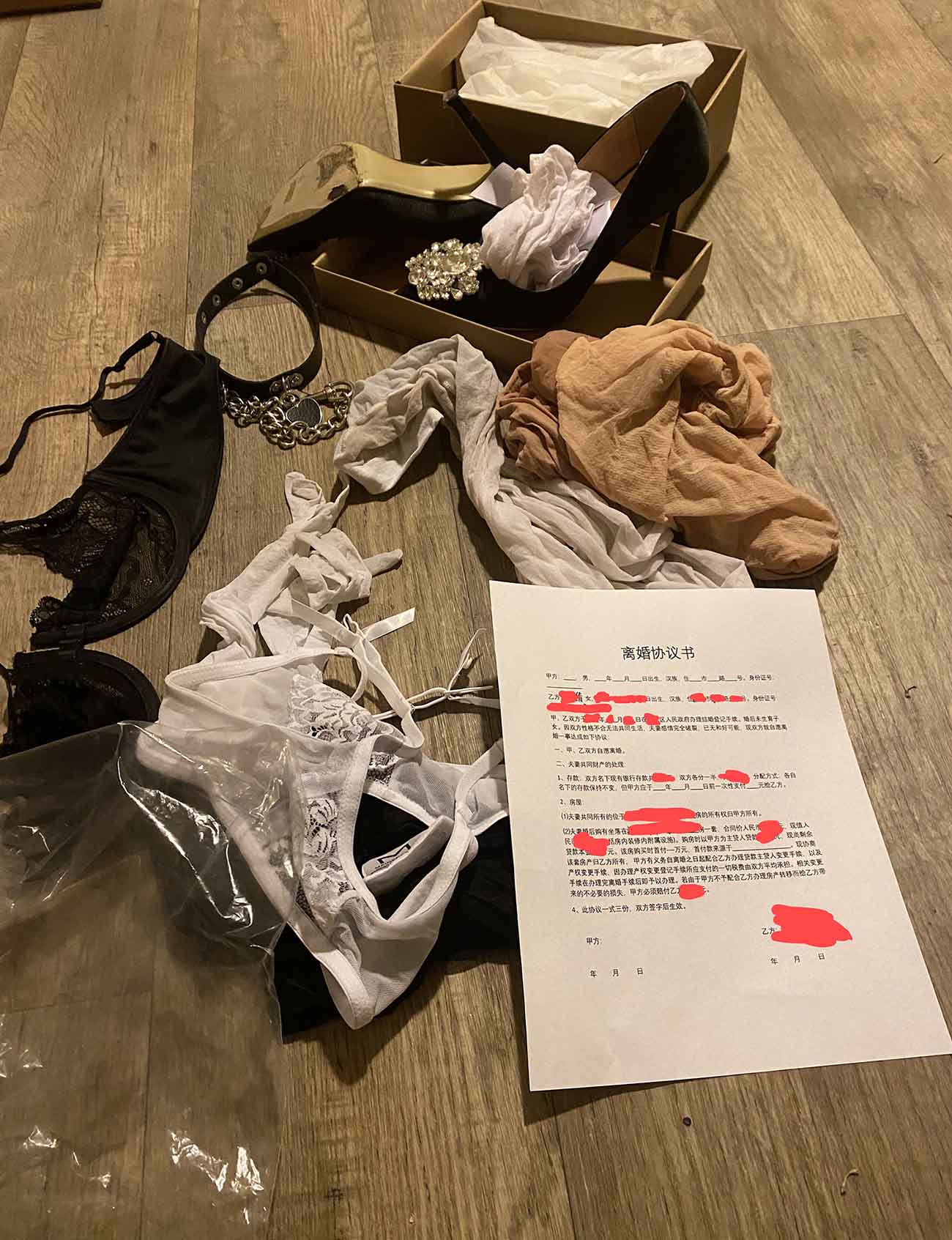 第二個重點來了,這個安全暗號在上個月終於用上了。就標題說的,讓我玩了一回離婚遊戲。星期三下午收到一個包裹,打開一看是包裝好的老婆穿過的臭絲襪,奶罩內褲,吊襪帶吊帶襪,高跟鞋應有盡有,當然沒光盤,但有一張紙。。。是離婚協議書。當時看到這幾個字時我心臟都要跳出來了,但很快看到一張小紙條,寫著,打電話給我,62014。