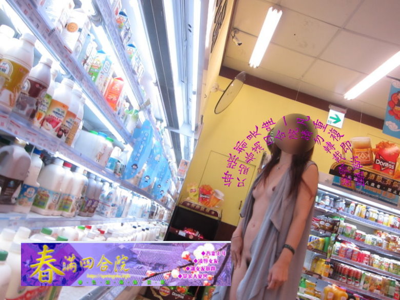 真希望哪天自己逛賣場的時候,也能有機會看到這樣的美景~全身就靠這件遮擋,還大膽的脫下拍照,真的太大膽了。
