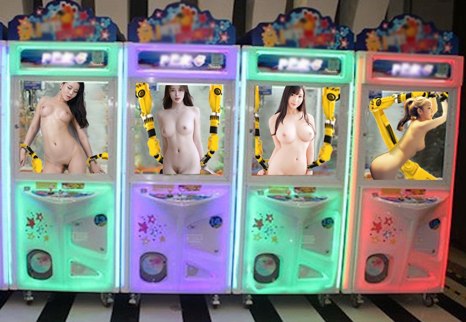 先來到了一個粉紅色的機台,裡面關著一個和我差不多年紀大的女孩子,只是她正一絲不掛地站在夾娃娃機中猛烈地掙扎,瘋狂地用他的玉臂拍打著機台的玻璃,胸前的兩個碩大的乳房隨著她拍打玻璃的動作劇烈地搖晃起來,這時候她的嘴巴大聲喊著什麼,可是看起來機台是完全隔音的,除了機台本身播放的音樂,我完全聽不到夾娃娃機中的少女所發出的任何聲音。