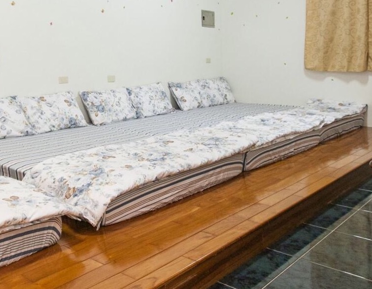 鄉下睡的是通舖。類似照片這個,只是木材粗糙,沒有上漆,也沒有床墊。