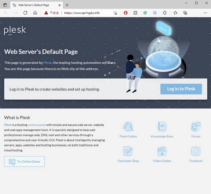 如果按進階直接連,會被導到奇怪的地方 : 「This page is generated by Plesk, the leading hosting automation software.