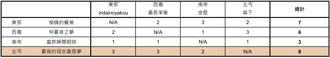今輪由三火先生負責點票,他細心地將投票造成列表給我,我也不浪費他的