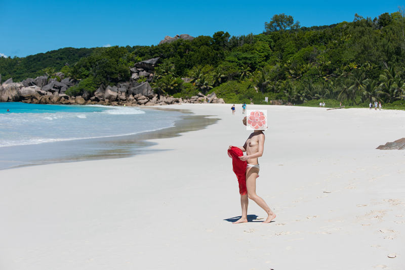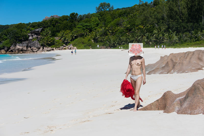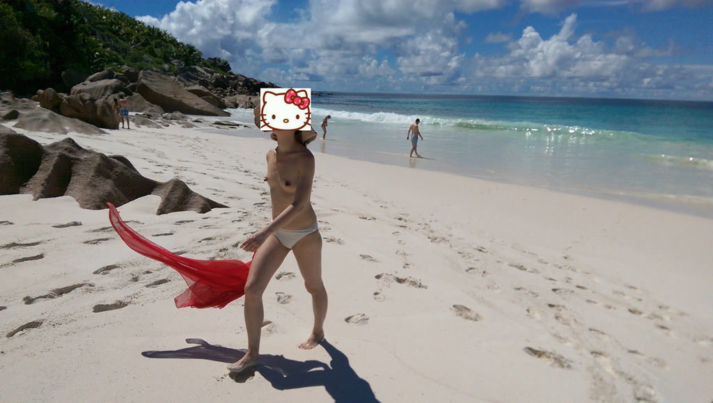 藍天碧海的美景又有美女裸體,構成一幅漂亮的景象