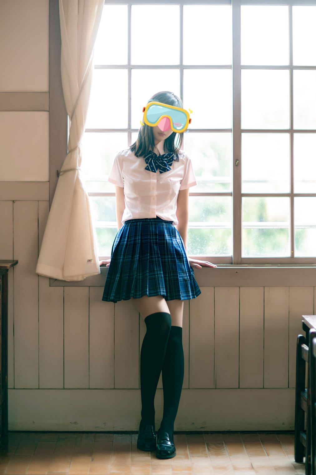 順著鏡頭方向看去,影廳門口坐著一對青年男女,男生不知道在講些什麽,逗得女生手擋在嘴邊咯咯地笑著。男生不算太高,身材比較精壯,上身穿著一件黑色T恤衫,下身是寬松米色的短褲,露出結實的大腿肌肉,裝扮很隨意,臉上卻是一副胸有成竹的自信表情。女生秀發披肩,白色短袖襯衫外面套著藏藍色的馬甲。藍白格子圖案的領結和同款的百褶裙蓋住大腿中段,向下延伸出絕對領域的白皙美腿,與黑色過膝襪和漆皮皮鞋勾勒出強烈的顏色對比。這是一身標準的日本校供JK制服。外人看起來,就是一對來看電影的小情侶。