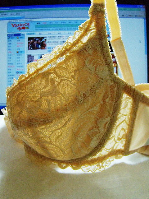 就這樣~眼睛看肉片,自己的胸部用胸罩套住磨擦,小弟弟用小褲褲,兩手都正在忙碌中.
