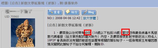 現在沒有網站准許貼這種文 ,  四合院雖然沒有明文禁止 ,