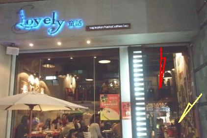 當時就坐在黃箭頭所指處,正好是樓梯下方(紅色為樓梯)
