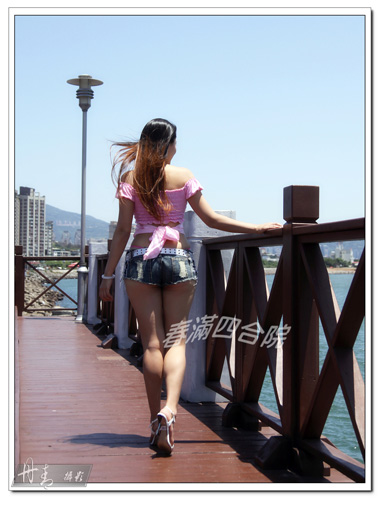 超水準的拍照,超短熱褲+裸露性感丁字褲,男人見了一定定睛直視,