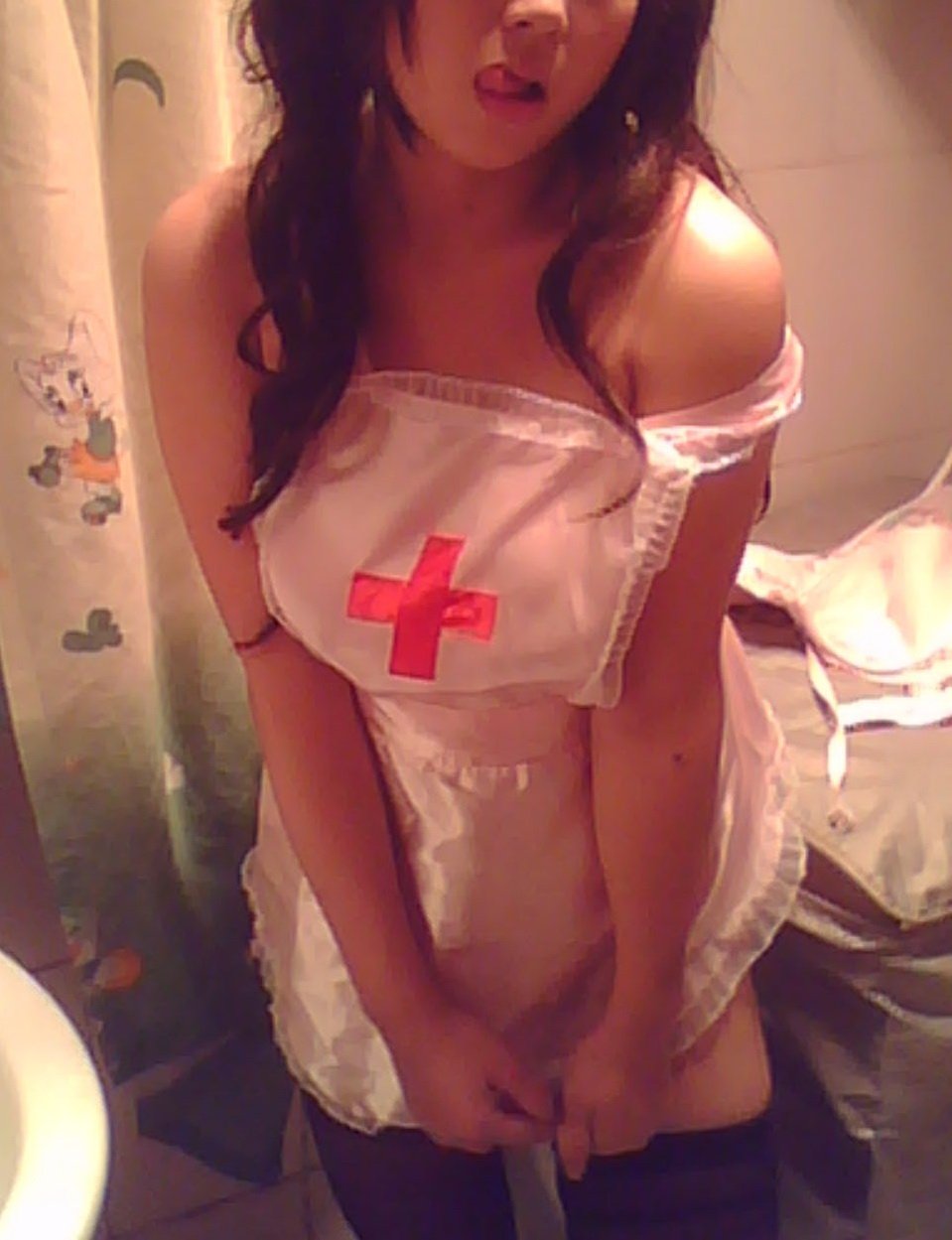 短的只有到大腿根,透明得可以看見沒穿乳罩的奶子和胸前那尖尖的乳頭;下身