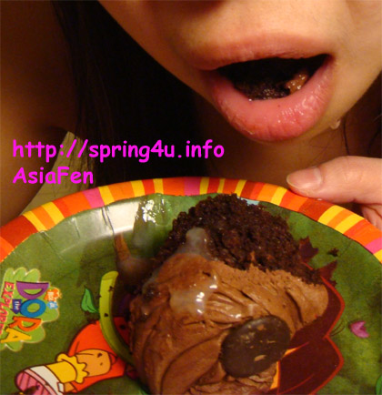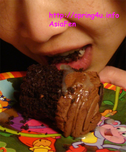 沒想到芬一低頭就咬下一口沾滿精液的蛋糕
