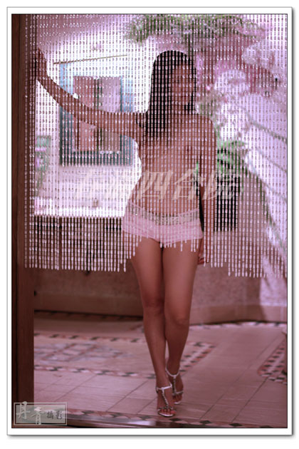 在珠簾後隱約可見,面目姣好,身材玲瓏有緻....
