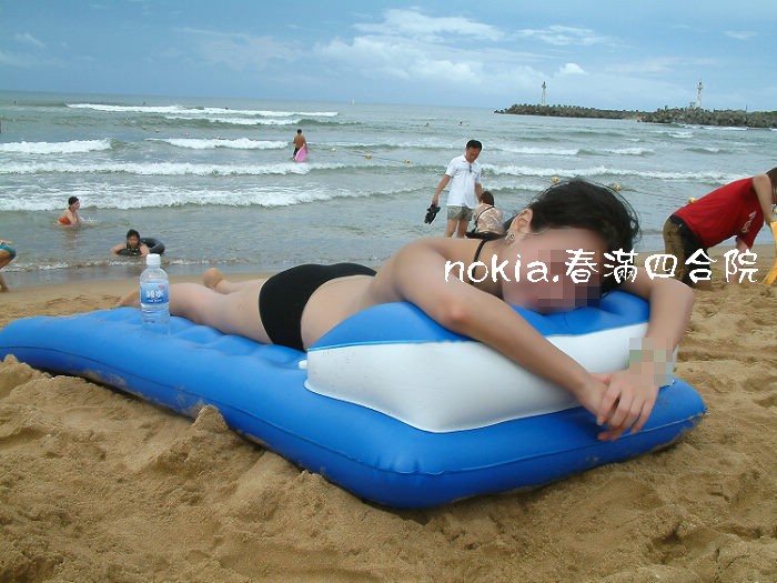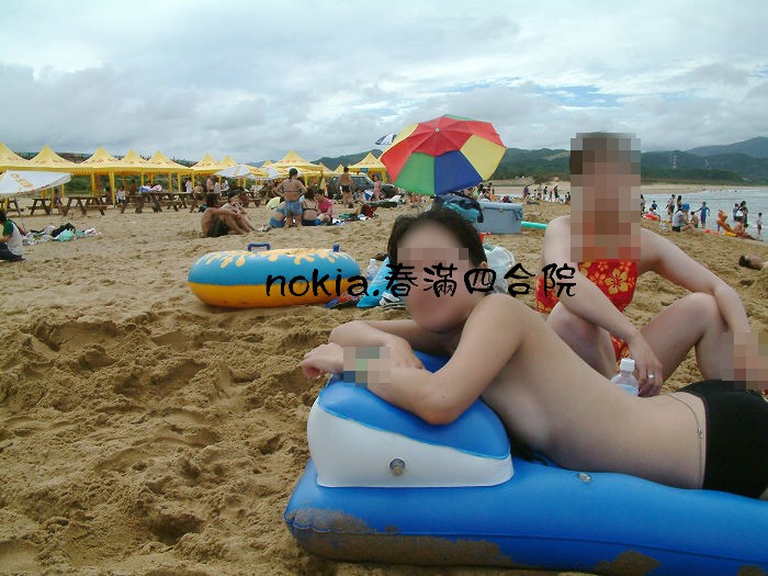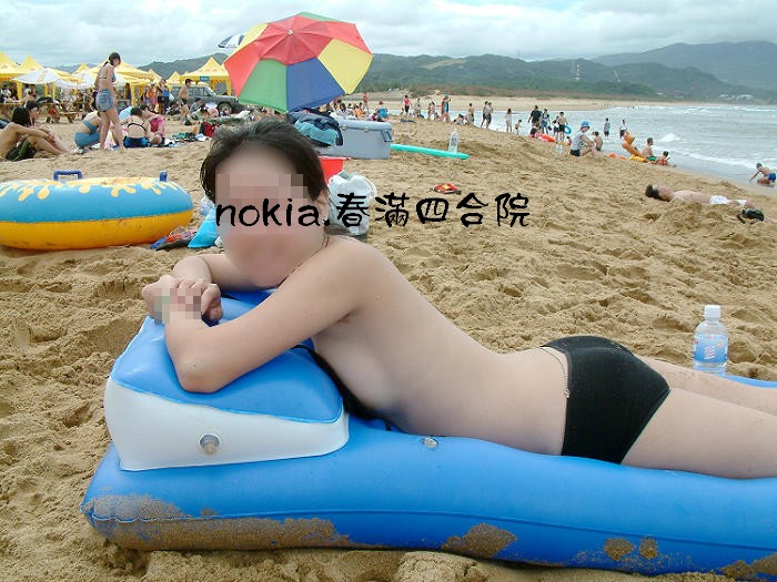 在墾丁裡面敢上空   大嫂真的是很勇敢阿    而且看天空  太陽不會很大   應該不是去曬太陽的   哈哈    皮膚顏色很白  身材也很好   想必是海灘上面最受矚目的一位辣妹阿