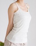 上身穿著淺灰色彈性貼身的無袖上衣(跟圖一基本上一模一樣),背個小背包,
