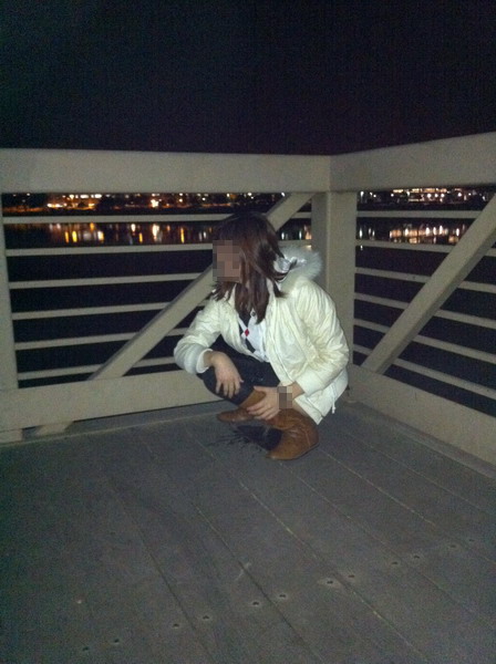 今天回到房間之後,照例又去湖邊試膽,想不到經過昨天的試驗,今天的amy似乎愛上了外拍,尺度大多了.拍照中間剛好遇到有人慢跑(老外真奇怪,這麼晚了,天氣又這麼冷,還要跑步),幸好他經過我們的時候都是我們拍完照的時候,amy就問我如果被他當場看到的話,他會有怎樣的反應,我就說,我也不知道,如果他跟我們示好的話,那我們就邀他入鏡,他如果ok,那麼我會繼續邀請他來我們房間,到時你今晚就爽了,有兩根可以用,amy嘴上不說,可我知道她可是愛的呢!甚至我覺得她會因此故意暴露給他看.