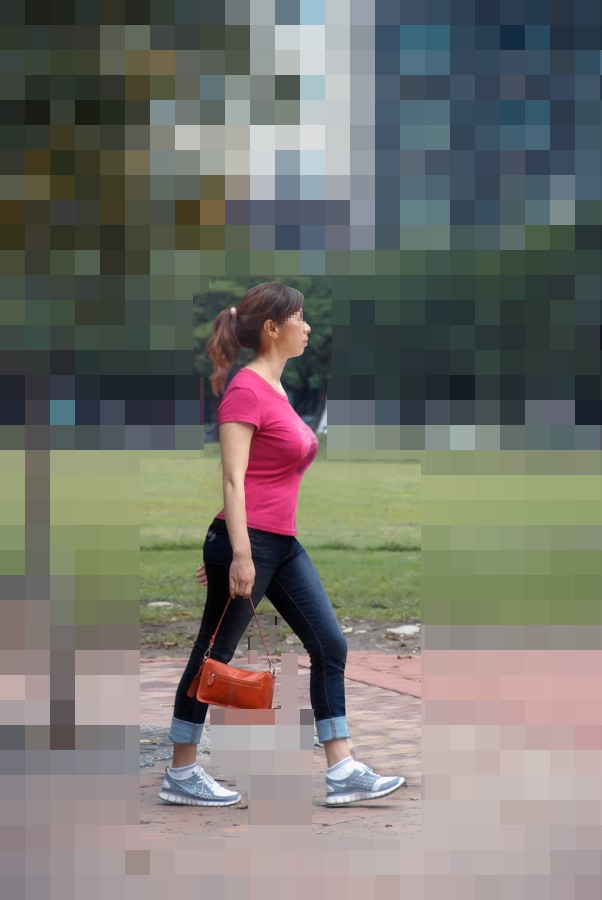 面部轮廓略过,少妇前面确实是胸围高挺,让人非常想揉捏一番,怪不得楼主在见过她后会经常意淫下子。略微有点小肚子,臀部也够厚实饱满,在人烟稀少的市郊游荡真是诱人犯罪。