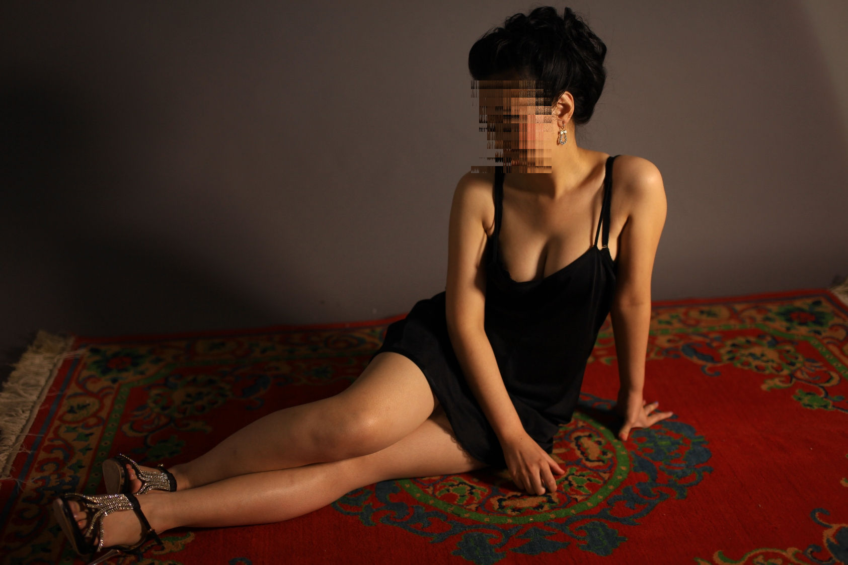 拍攝衣服:白襯衣,黑色吊帶低胸連衣裙,自帶連衣裙