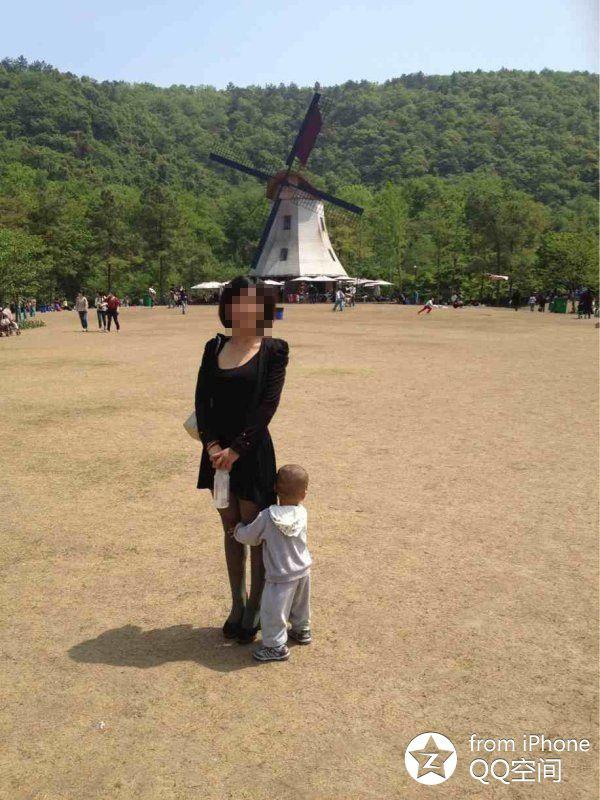 張她和濤還有兒子去旅遊的照片。