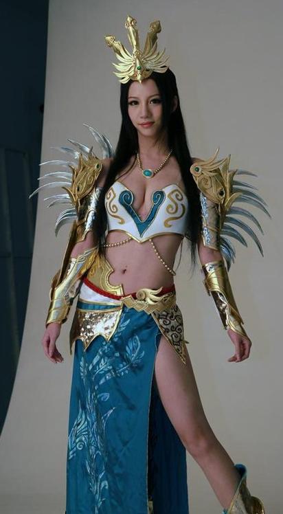 上陣喜歡穿著藍綾,頭戴金鳳盔,為了方便戰鬥,鎧甲只包覆住酥胸腰臀手腳,露出雪白