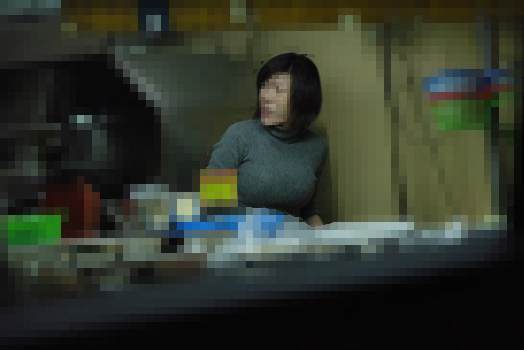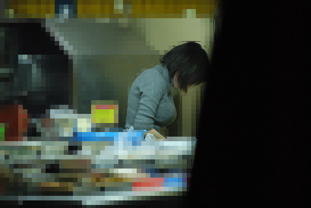 當老闆娘下半身只剩內褲的走進攤位裡後,紙箱間的縫隙被其中一個男人給