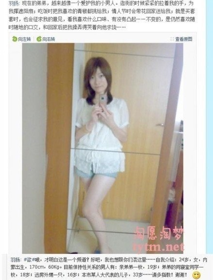 管理員的意思是…腦袋裡整天都想著能和誰做愛,是弟弟爸爸都無所謂…的想法嗎!? 會把這種事拿來寫部落格還附生活照片,我自嘆不如惹,而且那內容用看的都臉紅,更別說是寫了。男生真會喜歡這樣愛性的女生嗎!? 還是當那是隻發情的熊貓呀…就很特別很罕見這樣~!! 就如同我前陣子想的,會有人想玩被狗玩過的洞嗎?? 對女生而言,當看開了,一切也就無所謂了,一次十次百次…而男生怕是連一次都不願意~~就我來看,男生比女生還要有性潔癖。