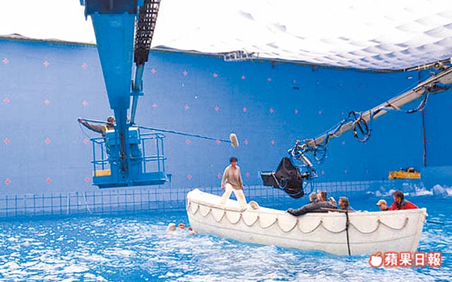 攝影棚在拍攝影片時一般會有藍幕(blue screen)、綠幕(green screen)兩種,如同下面造浪池圖片。