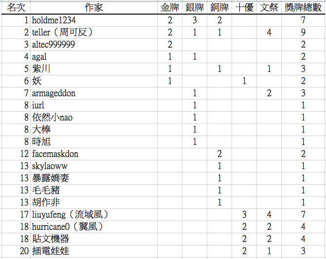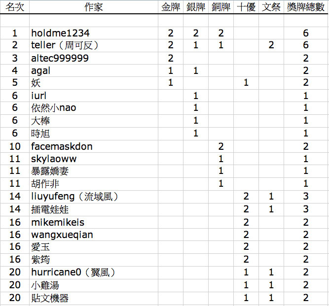 標題: 【四合院作家獎牌榜】