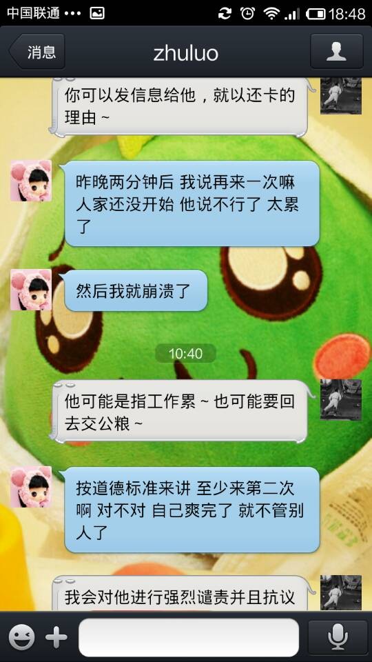 各种吐槽,欲求不满,海南附近的狼友有兴趣满足其欲望,可以将联系方式,个人资料和近照发至