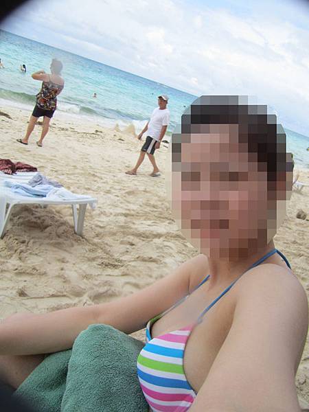 老婆的說法是反正這裡沒人認識,又有浴巾綁著,風又不大,沒人看啦,就順從我意,但只有一