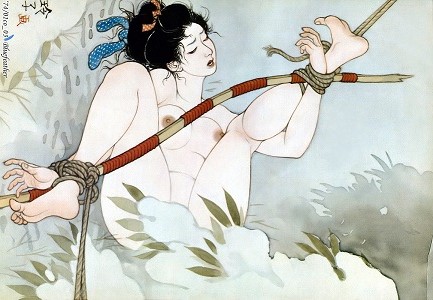 或是把棍子跟小女僕的手腕跟腳踝綁一起,