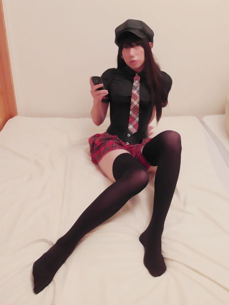 螢幕上的我穿著蘇格蘭式的紅黑色格子短裙,上衣是搭配同樣紅黑格子花紋