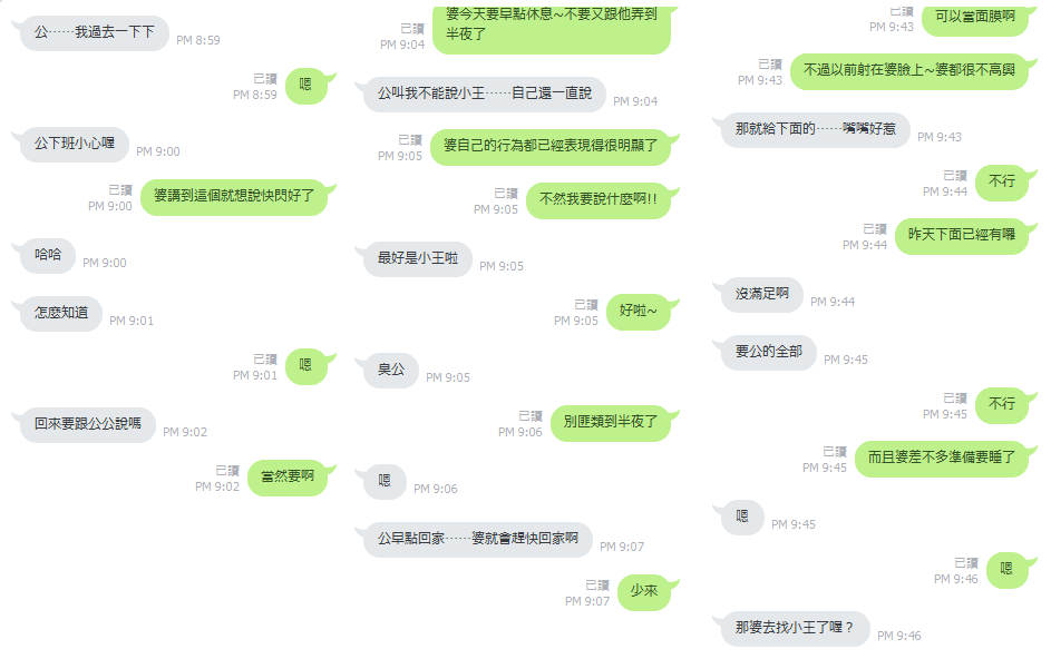 女友躺在我身邊問我應該要怎麼回,然後女友照著我說的問了:妳老婆不在旁邊嗎?