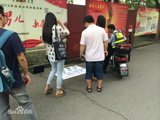 許多路過的同學看到後都圍了上來,其中還有很多人拿起手機拍照,於是就