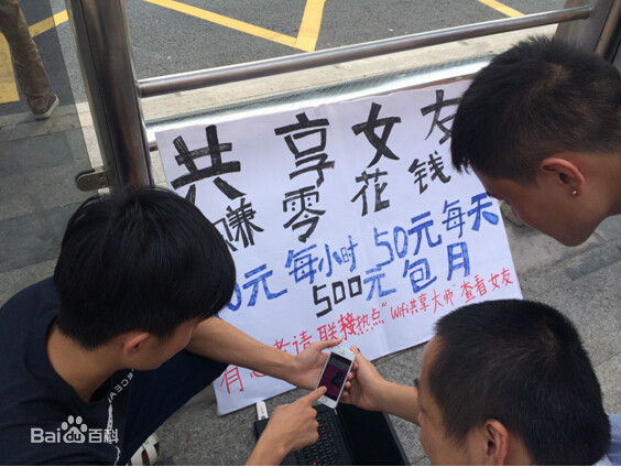 牌子下方明碼標價:「10元每小時,50元包天,500元包月,共享服