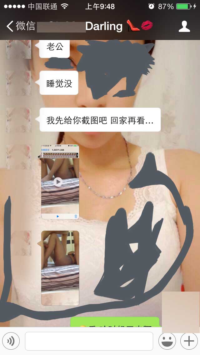 哇,真是太刺激了。單看這一張聊天圖就氣血上湧,爽翻的感覺。樓主這女友真是太棒了,看露出的部分不光膚白貌美,還有一雙大美腿,最難能可貴的還是分享自己和別人做愛的視頻,真是太讚了。想象我的女友要是把她和別人做愛的視頻留下來給我看,估計刺激得至少連擼三次。