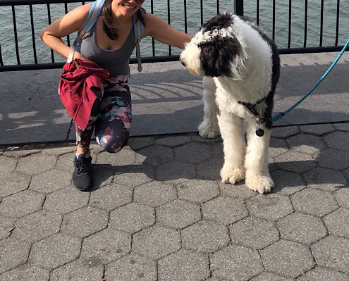 這個狗狗旁邊各站一位退休的華人老伯,他們原本正在釣魚,老婆看到狗狗太可愛,就衝向前問伯伯可否和狗狗合照?伯伯太友善,當然願意。
